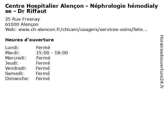 Termes de recherche pour Centre Hospitalier Alençon - Néphrologie hémodialyse - Dr Riffaut:alencon, bureau, centre, med, traitement, hospitalier, médecin, consultation, la médecine, dr, therapie, hémodialyse, néphrologie, la maladie, la pratique, riffaut |