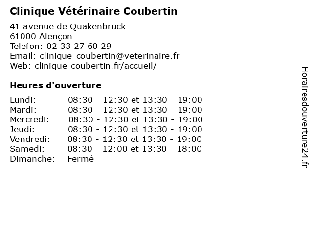 | Vendredi | 08:30-12:30 et 13:30-19:00 |