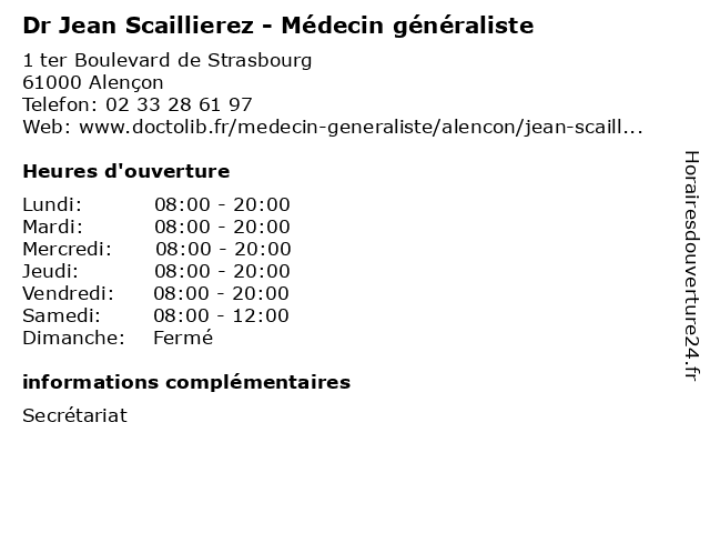 | Mercredi | 08:00-20:00 |