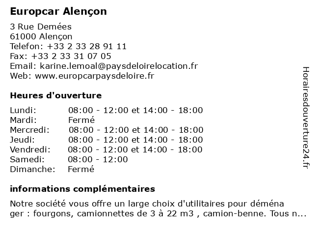 2 Europcar Le Mans Gare (Distance: 49,26 km) 43 Boulevard Marie et Alexandre Oyon, 72100 Le Mans europcar, gare, le, mans 3 Europcar (Distance: 52,00 km) - Rue Condorcet, 72400 Cherre agence, cartons, déménagements, europcar, location, utilitaires, véhicules |
