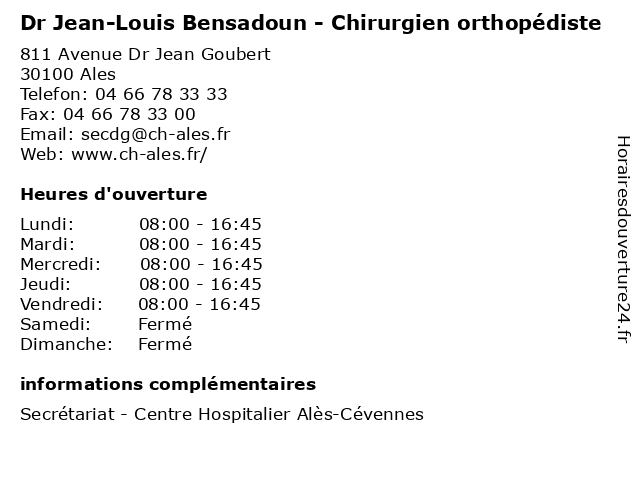 1 Dr Hynek Bata - Chirurgien orthopédiste et traumatologue (Distance: 0,00 km) 811 Avenue Dr Jean Goubert, 30100 Ales bata, chirurgien, consultation, docteur, dr, et, hynek, med, médecin, orthopédiste, traitement, traumatologue 2 Dr Mondher Milazzo-Abdelmoula - Chirurgien orthopédiste (Distance: 0,00 km) 811 Avenue Dr Jean Goubert, 30100 Ales abdelmoula, chirurgien, consultation, docteur, dr, med, milazzo, mondher, médecin, orthopédiste, traitement 3 École Primaire Publique Louis Leprince Ringuet (Distance: 1,57 km) 546 Route de la Royale, 30100 Alès cours, education, leprince, louis, primaire, publique, ringuet, services, école 4 D'Alessandro Nicolas Jacques Louis (Distance: 2,41 km) 11 Avenue De Stalingrad, 30100 Ales alessandro, jacques, louis, nicolas, restaurants 6 Jean Louis David (Distance: 2,57 km) 4 Rue d'Avéjan, 30100 Alès beauté, cheveux, david, jean, louis, ongles, salon |