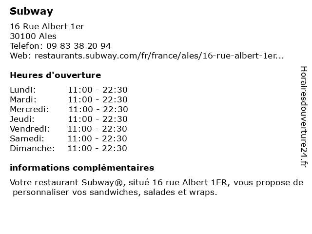 | Horaires d'ouverture | ||