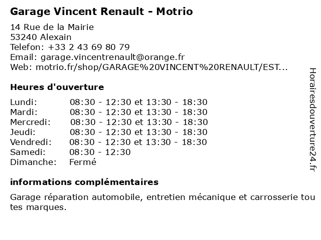 Termes de recherche pour Garage Vincent Renault - Motrio:garage, renault, vincent, motrio, garage alexain, garage multimarque, garage automobile à proximité, pneus motrio, garage automobile 53, dépannage auto alexain, garage automobile alexain, garage motrio alexain, devis en ligne alexain |