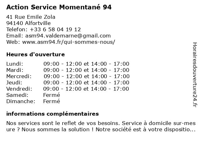 Lundi | 09:00-12:00 et 14:00-17:00 |