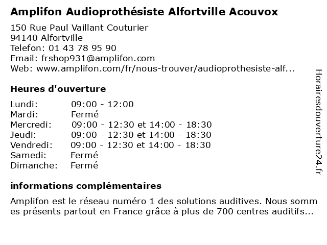 Termes de recherche pour Amplifon Audioprothésiste Alfortville Acouvox:alfortville, audioprothésiste, amplifon, audiologie, acouvox |