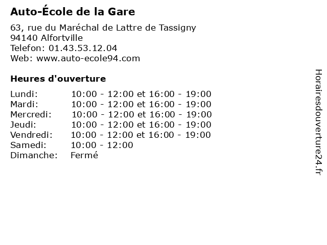 1 Auto-École de la Gare (Distance: 2,83 km) 5, 7, 9, rue du Général Leclerc, 94000 Créteil auto, auto / moto, de, ecole, entraînement, gare, la, services, école 2 Pizza Express Gare (Distance: 0,04 km) 16 avenue du Général Malleret-Joinville, 94140 Alfortville alimentation, boisson, express, gare, pizza, épicerie 3 Café de la Gare (Distance: 0,15 km) 11 Rue du Capitaine Roland Deplanque, 94700 Maisons Alfort bar, bistro, bistrot, brasserie, café, de, gare, la, restaurant, restauration 4 Yespark, location de parking au mois - Gare RER de Maisons Alfort - Alfortville (Distance: 0,32 km) 50 Rue Victor Hugo, 94140 Alfortville alfort, alfortville, au, de, gare, location, maisons, mois, parking, rer, yespark 5 Yespark, location de parking au mois - Mairie/Gare - Alfortville (Distance: 0,62 km) 13 Rue des Essertes, 94140 Alfortville alfortville, au, de, location, mairie/gare, mois, parking, yespark 6 |