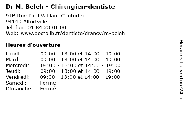 | Lundi | 09:00-13:00 et 14:00-19:00 |