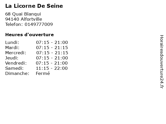 Lundi | 07:15-21:00 |
