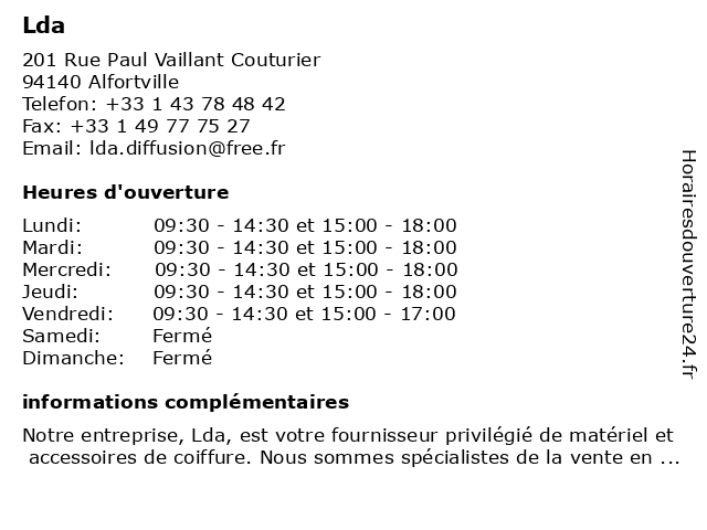 Lundi | 09:30-14:30 et 15:00-18:00 |