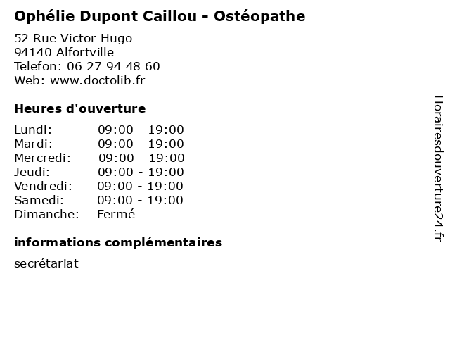 1 Ophélie Dupont Caillou - Ostéopathe (Distance: 12,96 km) 2 Rue des Hantes, 77340 Pontault-Combault actes et symptômes, caillou, dupont, dysfonctionnement temporo-mandibulaire dtm, expertises, ophélie, ostéopathe, ostéopathie de la femme enceinte 2 Vanessa Dupont-Pourquery - Ostéopathe (Distance: 1,71 km) 17b Rue du Val d'Osne, 94410 Saint-Maurice dupont, ostéo, ostéopathe, ostéopathes, pourquery, soins, vanessa 3 Laurette Dupont-Pourquery, Psychologue (Distance: 1,72 km) 17 Rue du Val d'Osne, 94410 Saint-Maurice dupont, laurette, pourquery, psychologue 4 Aude Dupont - Gestalt Thérapeute (Distance: 4,70 km) 21 Avenue du Général de Gaulle, 94160 Saint Mandé aude, dupont, gestalt, psychanalyste, psychologue, psychothérapeute, thérapeute, thérapie 5 Dr Delphine Dupont - Gynécologue médicale et obstétrique (Distance: 5,68 km) 17 Rue Bobillot, 75013 Paris bebe, delphine, dr, dupont, et, gynecologie, gynécologue, maternite, médicale, obstetrique, obstétrique 6 Dr Sylvère Dupont-Monod - Ophtalmologue (Distance: 6,44 km) 23 Rue du Champ de l'Alouette, 75013 Paris consultation, docteur, dr, dr., dupont, libre, monod, ophtalmologie, ophtalmologue, santé, sylvère |