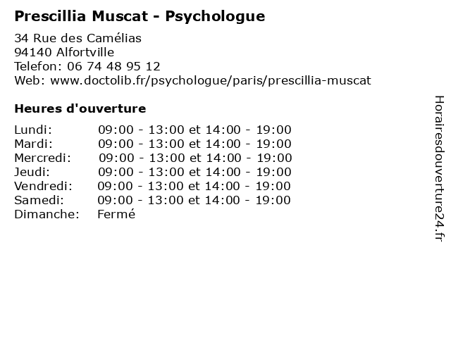 1 Prescillia Meimoun - Spécialiste en médecines douce et alternative (Distance: 6,48 km) 188 Grande Rue Charles de Gaulle, 94130 Nogent-sur-Marne alternative, consultation, docteur, douce, en, et, med, meimoun, médecin, médecines, prescillia, spécialiste, traitement 2 Maître Prescillia Rongeat - Avocate (Distance: 10,89 km) 137 rue de l’Université, 75007 Paris avocate, avocats, civils, droits, juridiques, maître, prescillia, rongeat 3 Frouhid Baghaie - Sophrologue (Distance: 0,00 km) 34 Rue des Camélias, 94140 Alfortville baghaie, frouhid, sante, soins, sophrologie, sophrologue 4 Mathilde Dequier - Psychologue (Distance: 0,07 km) 61 Rue du Maréchal de Lattre de Tassigny, 94140 Alfortville dequier, folie, mathilde, psychiatre, psychiatrie, psychiatrique, psychologue 5 Maelys Viot - Ostéopathe (Distance: 0,07 km) 61 Rue du Maréchal de Lattre de Tassigny, 94140 Alfortville maelys, osteo, osteopathe, ostéopathe, sante, soins, viot 6 Carole Besson - Psychologue - secrétariat (Distance: 0,15 km) 14 Rue Roger Girodit, 94140 Alfortville besson, cabinets, carole, médecins, psychologue, secrétariat, thérapies |