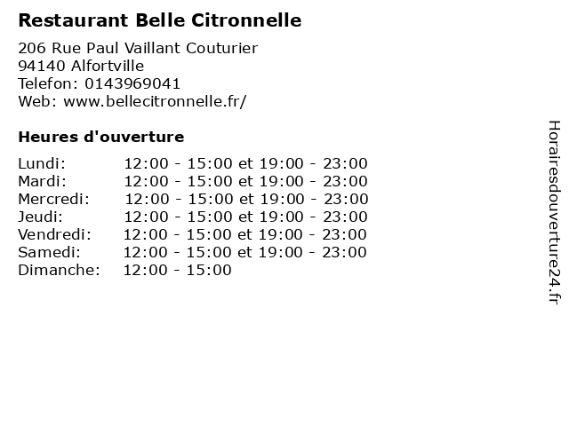 Lundi | 12:00-15:00 et 19:00-23:00 |