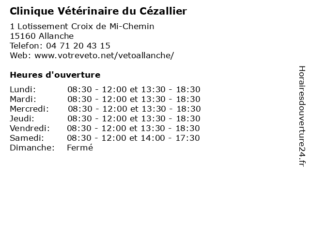 | Lundi | 08:30-12:00 et 13:30-18:30 |