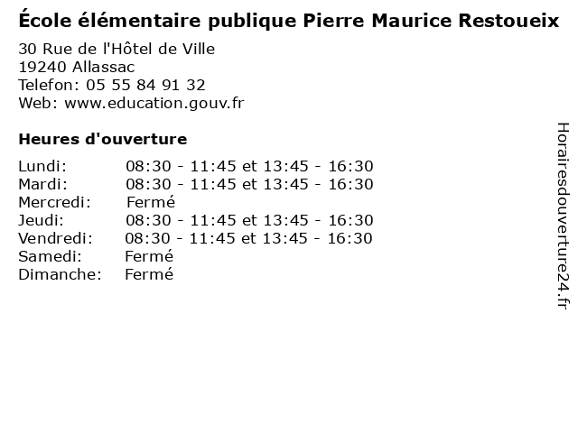 | Mardi | 08:30-11:45 et 13:45-16:30 |