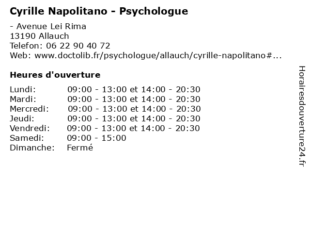 Lundi | 09:00-13:00 et 14:00-20:30 |