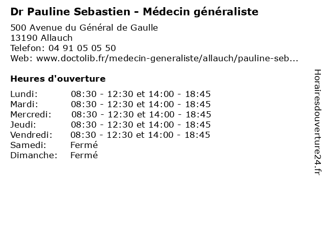 | Lundi | 08:30-12:30 et 14:00-18:45 |