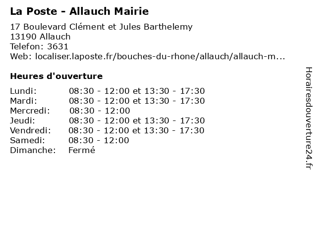 Termes de recherche pour La Poste - Allauch Mairie:poste, relais, la, ups, point, mairie, téléphonie, chronopost, banque, dps, postale, colis, courrier, timbres, bureau de poste, allauch, banque postale, western union, expéditions internationales |