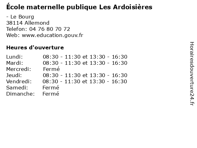 | Mardi | 08:30-11:30 et 13:30-16:30 |