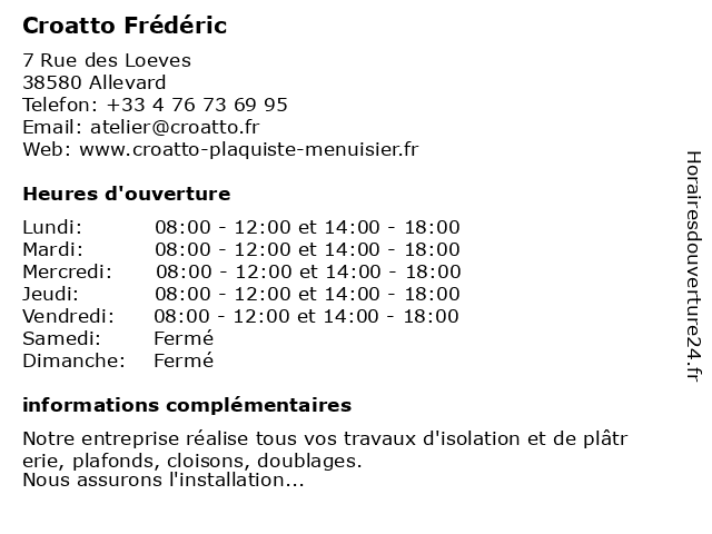 Lundi | 08:00-12:00 et 14:00-18:00 |