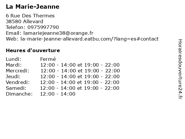 | Horaires d'ouverture | ||