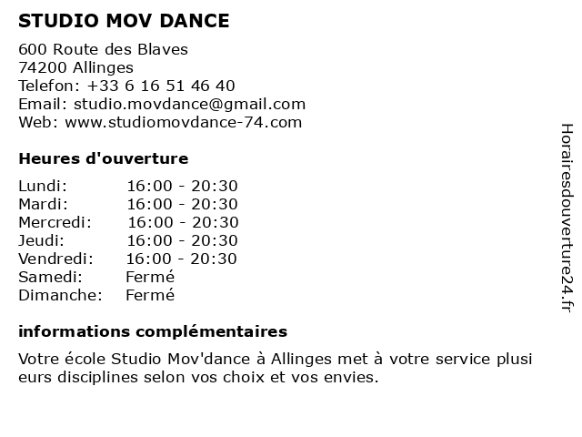 | Lundi | 16:00-20:30 |