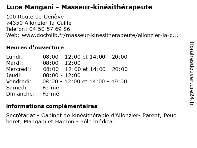 | Lundi | 08:00-12:00 et 14:00-20:00 |