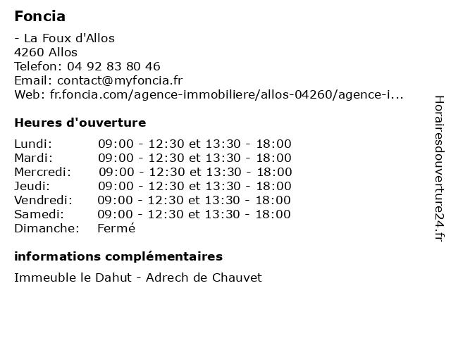 | Lundi | 09:00-12:30 et 13:30-18:00 |