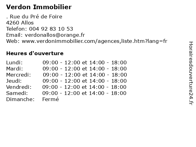 1 Verdon Tourisme - Accueil touristique de Colmars-Les-Alpes (Distance: 6,61 km) - Ancienne Auberge Fleurie, 04370 Colmars accueil, alpes, colmars, conseil, de, information, les, office, renseignement, tourisme, touristique, verdon, ville, visite 2 Résidence Les Chalets du Verdon*** - Vacancéole (Distance: 6,69 km) Pont De Labrau, 04260 La Foux D'Allos chalets, du, les, résidence, vacancéole, verdon*** 4 Communauté de communes Haut-Verdon Val d'Allos (Distance: 7,98 km) - Colmars, 04370 Beauvezer administration, coeur, communauté, communes, d'allos, de, haut, services publics, val, verdon 5 Hotel Les Canyons du Verdon (Distance: 44,69 km) . Boulevard Saint-Michel, 04120 Castellane bar, canyons, du, hotel, les, restaurant, service, verdon 6 Communauté de Communes du Moyen Verdon (Distance: 44,95 km) 126 Avenue Frédéric Mistral, 04120 Castellane administration, communauté, communes, de, du, moyen, services publics, verdon |