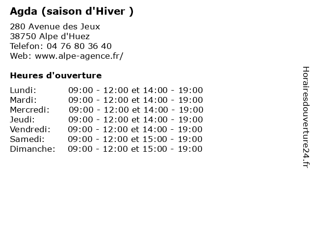 1 Agda (Hors saison) (Distance: 0,00 km) 280 Avenue des Jeux, 38750 Alpe d'Huez agda, agence, hors, immobiliers, location, saison, services, vendre 2 Agda (saison d’été) (Distance: 0,25 km) 280 Avenue des Jeux, 38750 Alpe d'Huez agda, agence, d’été, immobiliers, location, saison, services, vendre 3 Sherpa - Hiver (20 Décembre - 20 Avril) (Distance: 0,28 km) 177 Avenue de l'Etendard, 38750 Alpe D Huez 20, avril, décembre, en, hiver, hypermarchés, magasins, sherpa, supermarchés 4 Le Relais Vacances des Mousquetaires (hiver) (Distance: 0,67 km) 179 avenue des Marmottes, 38750 Alpes-d'Huez alimentation, boucherie, des, hiver, le, magasins, mousquetaires, relais, vacances, épicerie 5 Résidence Odalys Le Christiania (Hiver) (Distance: 0,90 km) - Hameau des Bergers, 38750 L'Alpe d'huez christiania, de, hiver, le, location, maison, odalys, personnes, retraite, résidence, vacances 6 Sherpa - Hiver (21 Décembre - 20 Avril) (Distance: 3,97 km) - Les Martagons, 38142 Auris en oisans 20, 21, avril, décembre, en, fondue ou pierre à griller, hiver, la commande en ligne, le prêt d’appareils à raclette, marche, sherpa, supermarche |