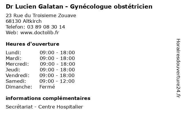 1 Dr Alina Fumurescu - Gynécologue obstétricien (Distance: 0,00 km) 23 Rue 3ème Zouave, 68130 Altkirch alina, consultation, docteur, dr, fumurescu, gynécologue, med, médecin, médecine, obstétricien, traitement 2 Dr. Edgar Montoya Ramirez - Gynécologue médical et obstétrique (Distance: 13,36 km) 20 avenue du Dr René Laennec, 68100 Mulhouse consultation, docteur, dr., edgar, et, gynécologie, gynécologue, med, montoya, médecin, médecine, médical, obstétrique, ramirez, traitement 3 Dr. Francine Achatz -Hestin - Gynécologue obstétricien (Distance: 13,36 km) 20 avenue du Dr René Laennec, 68100 Mulhouse achatz, consultation, docteur, dr., francine, gynécologie, gynécologue, hestin, med, médecin, médecine, obstétricien, obstétrique, traitement 4 Dr. Edith Tolla Allam-Ndoul - Gynécologue obstétricien (Distance: 13,36 km) 20 avenue du Dr René Laennec, 68100 Mulhouse allam, consultation, docteur, dr., edith, gynécologue, med, médecin, médecine, ndoul, obstétricien, tolla, traitement 5 Dr Didier Cohen Khallas - Gynécologue médical et obstétrique (Distance: 13,36 km) 20 avenue du Dr René Laennec, 68100 Mulhouse cohen, consultation, didier, docteur, dr, et, gynécologue, khallas, med, médecin, médecine, médical, obstétrique, traitement 6 Dr. Anne Fleury-Cahen - Gynécologue médical et obstétrique (Distance: 13,36 km) 20 avenue du Dr René Laennec, 68100 Mulhouse anne, cahen, consultation, docteur, dr., et, fleury, gynécologue, med, médecin, médecine, médical, obstétrique, traitement |