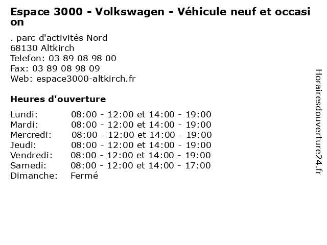 | Lundi | 08:00-12:00 et 14:00-19:00 |