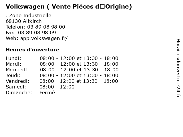 | Lundi | 08:00-12:00 et 13:30-18:00 |