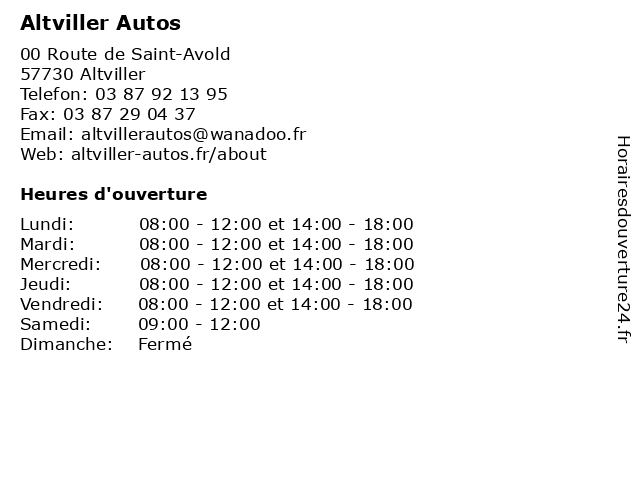 | Lundi | 08:00-12:00 et 14:00-18:00 |