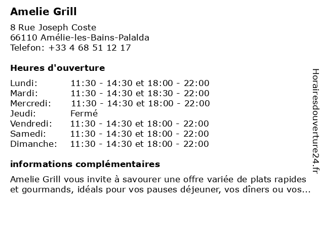 | Lundi | 11:30-14:30 et 18:00-22:00 |