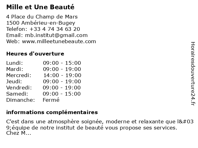 1 Institut de beauté Elle et lui (Distance: 1,89 km) 41 Rue four a chaux, 01500 Amberieu en bugey beauté, de, elle, et, institut, institut de beauté, loyettes, lui 2 Passion Beauté (Distance: 2,13 km) D77E, 01500 Ambérieu-en-Bugey beauté, boutique de maquillage, boutique de maquillage ambérieu-en-bugey, boutique de parfums, boutique de parfums ambérieu-en-bugey, coffret cadeaux, manucure, maquillage, massage, parfumerie, parfumerie ambérieu-en-bugey, parfums, passion, passion beauté, soins corps, soins visage, épilation 3 Beauté D'Ange (Distance: 2,35 km) 15 Rue du Docteur Charcot, 01500 Saint-Denis-en-Bugey beauté, d'ange 4 Le Temps d'Une Coupe (Distance: 8,24 km) 227 route de Genève, 01640 Saint-Jean-le-Vieux balayage, coiffeur, coiffure, coloration, coupe, d'une, le, mèche, temps 6 Institut de beauté - L'espace d'un instant (Distance: 11,23 km) 227 avenue Charles de Gaulle, 01800 Villieu-Loyes-Mollon beauté, d'un, de, espace, instant, institut, l'espace, soins, villieu |
