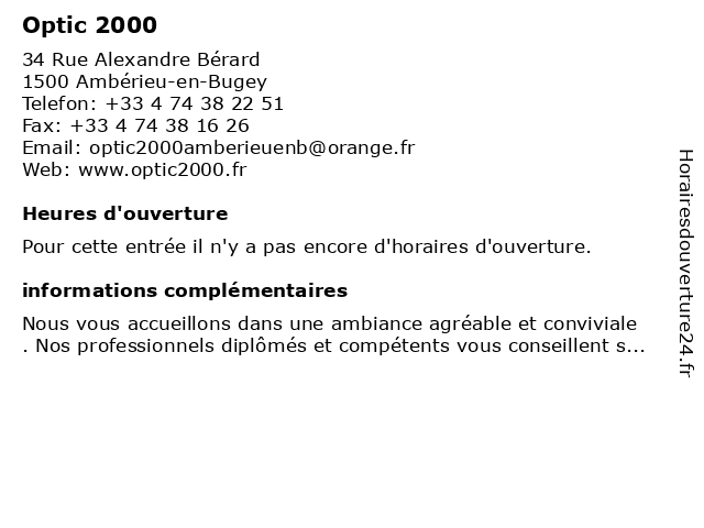 1 Sport 2000 (Distance: 1,60 km) - De l'Aviation, 01500 Amberieu en Bugey 2000, course à pied, mode, multisport, sport 3 Opticien Meximieux - Optic 2000 (Distance: 14,30 km) 22 Place Vaugelas, 01800 Meximieux 2000, lentilles de contact, lunettes de soleil, lunettes de vue, meximieux, optic, optic2000, opticien, opticien optic2000, ray-ban, rayban 5 Optic 2000 (Distance: 38,58 km) 60 Avenue de l'Europe, 69140 Rillieux-la-Pape 2000, lunettes, optic, santé, solaires 6 Optic 2000 (Distance: 43,88 km) . Place du Général De Gaulle, 74210 Faverges 2000, lunettes, optic, santé, solaires |