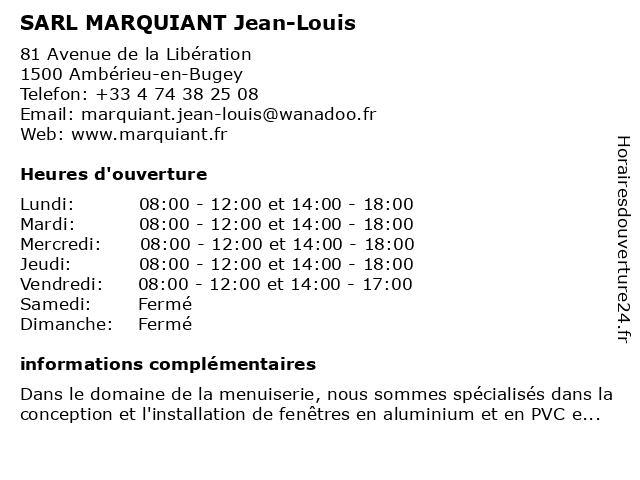| Samedi | Fermé |