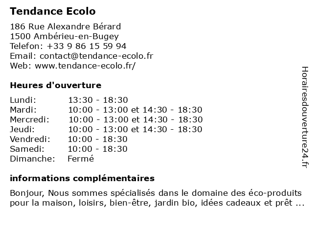 Mercredi | 10:00-13:00 et 14:30-18:30 |