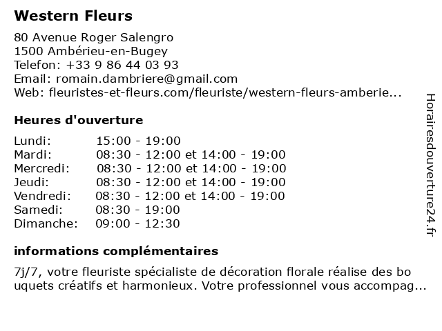 | Samedi | 08:30-19:00 |