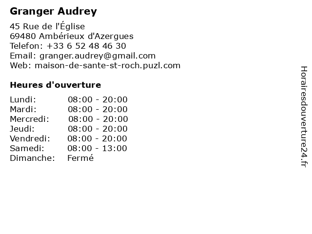 2 Audrey Goulevitch - Diététicienne (Distance: 6,70 km) 55 Boulevard Victor Vermorel, 69400 Villefranche-sur-Saône aliment, audrey, dieticien, diététicien, diététicienne, goulevitch, medecin, nutrition 3 Dr Audrey Trives - Médecin généraliste (Distance: 12,20 km) 62 Place Benoît Dubost, 69210 Fleurieux-sur-l'Arbresle audrey, docteur, dr, generaliste, généraliste, medical, médecin, soin, trives 4 Dr Audrey Jarry - Médecin généraliste (Distance: 12,81 km) 9b Rue de l'Église, 69890 La Tour-de-Salvagny audrey, docteur, dr, generaliste, généraliste, jarry, medical, médecin, soin 5 Institut de Beauté Audrey Girard (Distance: 14,07 km) 44 Avenue De La République, 69370 Saint-Didier-au-Mont-d'Or audrey, beauté, de, girard, institut, institut de beauté, manucure, soins, spa, épilations 6 Dr Audrey Le Maux - Médecin généraliste (Distance: 16,64 km) 65 rue des Contamines, 69140 Rillieux-la-Pape audrey, consultation, docteur, dr, généraliste, le, maux, med, médecin, médecine, traitement |