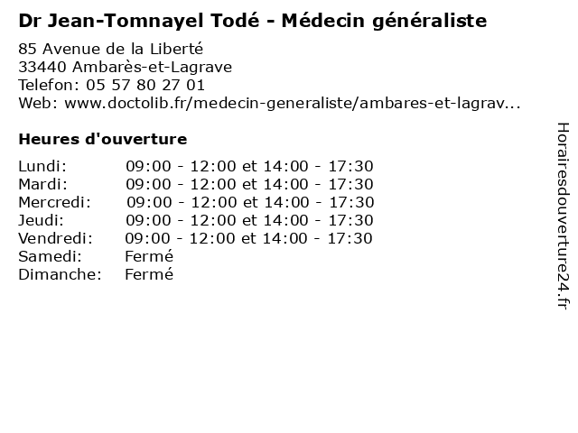 Lundi | 09:00-12:00 et 14:00-17:30 |