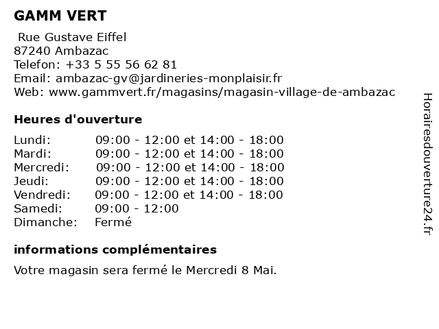 1 GAMM VERT (Distance: 14,11 km) 33 Rue Auguste Comte, 87280 Limoges animalerie, gamm, jardin, jardinerie, mobilier de jardin, plantes, pépinière, vert 2 GAMM VERT (Distance: 15,73 km) Maurinaud, 87400 Saint-Léonard-de-Noblat animalerie, gamm, jardin, jardinerie, mobilier de jardin, plantes, pépinière, vert 3 Gamm vert (Distance: 17,53 km) . RN 147, 87510 PEYRILHAC animalerie, animaux, gamm, horticulteur, jardin, jardinerie, vert 4 GAMM VERT (Distance: 19,28 km) La Gare, 87510 Peyrilhac animalerie, gamm, jardin, jardinerie, mobilier de jardin, plantes, pépinière, vert 5 Vert Anis (Distance: 12,67 km) - avenue de Beaubreuil, 87280 Limoges accessoires, anis, chaussures, maroquinerie, mode, vert 6 Vert Et Bleu Immobilier (Distance: 13,98 km) 27 Rue de la Révolution, 87400 Saint-Léonard-de-Noblat bleu, et, immobilier, vert |