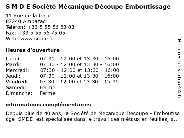 | Lundi | 07:30-12:00 et 13:30-16:00 |