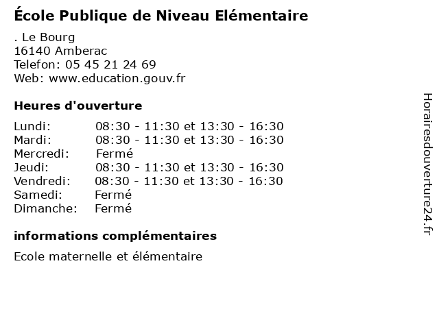1 École Elémentaire Publique (Distance: 2,61 km) . Le Bourg, 16230 Villognon cours, education, elémentaire, publique, services, école, élémentaire 2 École Elémentaire Publique (Distance: 3,77 km) . Le Bourg, 16140 Marcillac-Lanville cours, education, elémentaire, primaire, publique, services, école, élémentaire 3 École Elémentaire Publique - Xambes (Distance: 4,86 km) . Rue Principale, 16330 Xambes cours, elémentaire, publique, services, xambes, école 4 École Elémentaire Publique Georges Brassens (Distance: 5,76 km) . Route Echoisy, 16230 Cellettes brassens, cours, education, elémentaire, georges, publique, services, école, élémentaire 5 École Elémentaire Publique (Distance: 6,11 km) 18 Rue de la Gendarmerie, 16140 Aigre cours, education, elémentaire, publique, services, école, élémentaire 6 École Elémentaire Publique (Distance: 6,45 km) . Lieu-dit Le Bourg Genac, 16170 Genac-Bignac cours, education, elémentaire, publique, services, École, école, élémentaire |