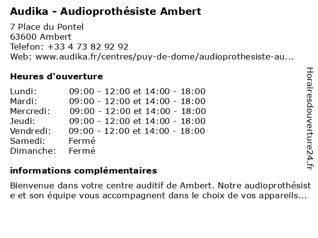 Termes de recherche pour Audika - Audioprothésiste Ambert:appareil auditif, audika, audioprothésiste, ambert, specialiste audition, audiologiste, centre auditif |