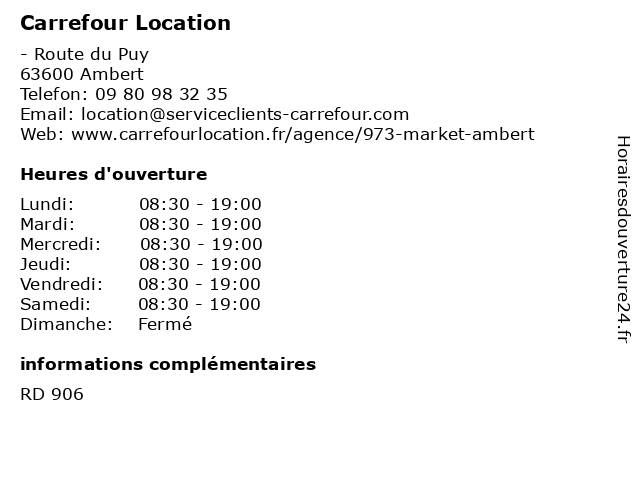 1 Carrefour Drive (Distance: 0,00 km) - Route Du Puy, 63600 Ambert alimentaire, carrefour, courses, drive, en ligne, magasin 2 Carrefour Station Service (Distance: 0,00 km) - Route du Puy, 63600 Ambert carburant, carrefour, essences, gazole, service, services, station 3 Carrefour Market (Distance: 0,05 km) - Route du Puy, 63600 Ambert alimentation, carrefour, magasin discount, market, supermarché 4 Intermarché location Ambert (Distance: 0,62 km) Route du Puy, 63600 Ambert ambert, intermarché, location 5 CarGo Location de Véhicules AMBERT (Distance: 3,00 km) 240 Route de Clermont, 63600 Ambert ambert, cargo, de, location, véhicules 6 Opel - Service après-vente (Distance: 51,28 km) 136 avenue de Cournon, 63170 Aubiere après, opel, service, service après-vente, vente, véhicules d'occasion, véhicules neufs, véhicules utilitaires |