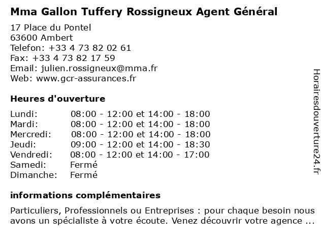 | Mardi | 08:00-12:00 et 14:00-18:00 |