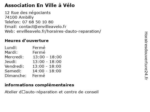 | Lundi | Fermé |
