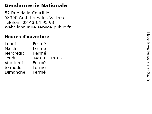 1 Gendarmerie Nationale (Distance: 9,62 km) 12 Rue de Verdun, 53100 Mayenne brigade, commandant, communauté, gendarme, gendarmerie, nationale, proximité, sécurité 2 Gendarmerie Nationale (Distance: 9,73 km) 53 Avenue Xavier Rineau Toute-Joie, 44190 Gétigné brigade, commandant, communauté, gendarme, gendarmerie, nationale, proximité, sécurité 3 Gendarmerie Nationale (Distance: 11,52 km) - Route de Couterne, 53110 Lassay-les-Châteaux brigade, commandant, communauté, gendarme, gendarmerie, nationale, proximité, sécurité 4 Gendarmerie Nationale (Distance: 14,09 km) - Avenue Charles de Gaulle, 53120 Gorron brigade, commandant, communauté, gendarme, gendarmerie, nationale, proximité, sécurité 5 Gendarmerie Nationale (Distance: 15,81 km) 44 Route Nationale, 53640 Le Ribay brigade, commandant, communauté, gendarme, gendarmerie, nationale, proximité, sécurité 6 Gendarmerie Nationale (Distance: 16,60 km) 1 Chemin Guillaumé, 61350 Passais brigade, commandant, communauté, gendarme, gendarmerie, nationale, proximité, sécurité |