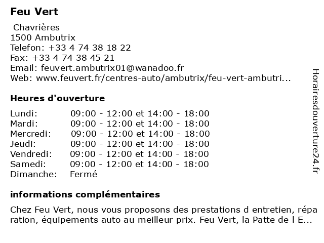 1 Feu Vert SNVA Franchisé indépendant (Distance: 0,00 km) Chavrières, 01500 Ambutrix feu, franchisé, indépendant, snva, vert 3 Espace Vert Bernard (Distance: 11,57 km) 16 Avenue de l'Oiselon, 01160 Pont-d'Ain bernard, création, entretien, espace, jardins, vert, élagage 4 AMAP Le Vert à Soie (Distance: 12,35 km) - place de l 'Hôtel de Ville, 01640 Jujurieux alimentation, amap, fruits, le, légumes, primeurs, producteur, soie, vert, viandes 5 Les Broches Au Feu De Bois (Distance: 13,03 km) Mas Plomb, 01800 Saint Eloi bois, broches, feu, restaurants 6 Atout Vert Paysage (Distance: 13,26 km) . Chemin Petit Etang, 01320 Chalamont atout, entretien, jardinerie, paysage, paysagistes, pépinière, vert |